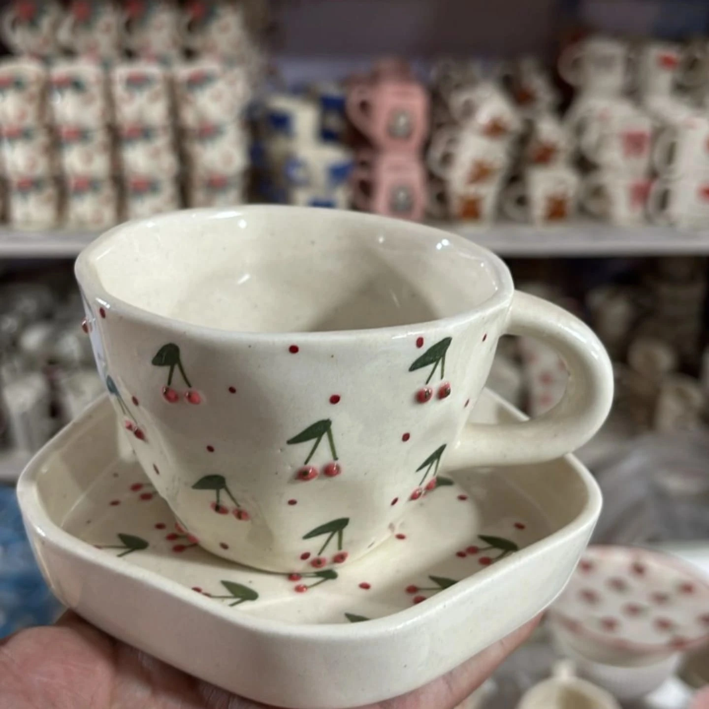 The Earth Store Cream Cherry Ceramic Coffee Mug Set of 1, 300 ML | Dishwasher &